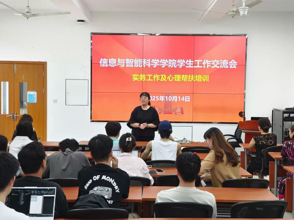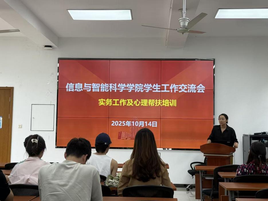 1014日,yl8858永利集团学生工作交流培训会在1号学院楼140会议室顺利召开。党委副书记郭姗出席本次活动,学院全体专兼职辅导员参会,会议由学生工作办公室主任唐菲菲主持。