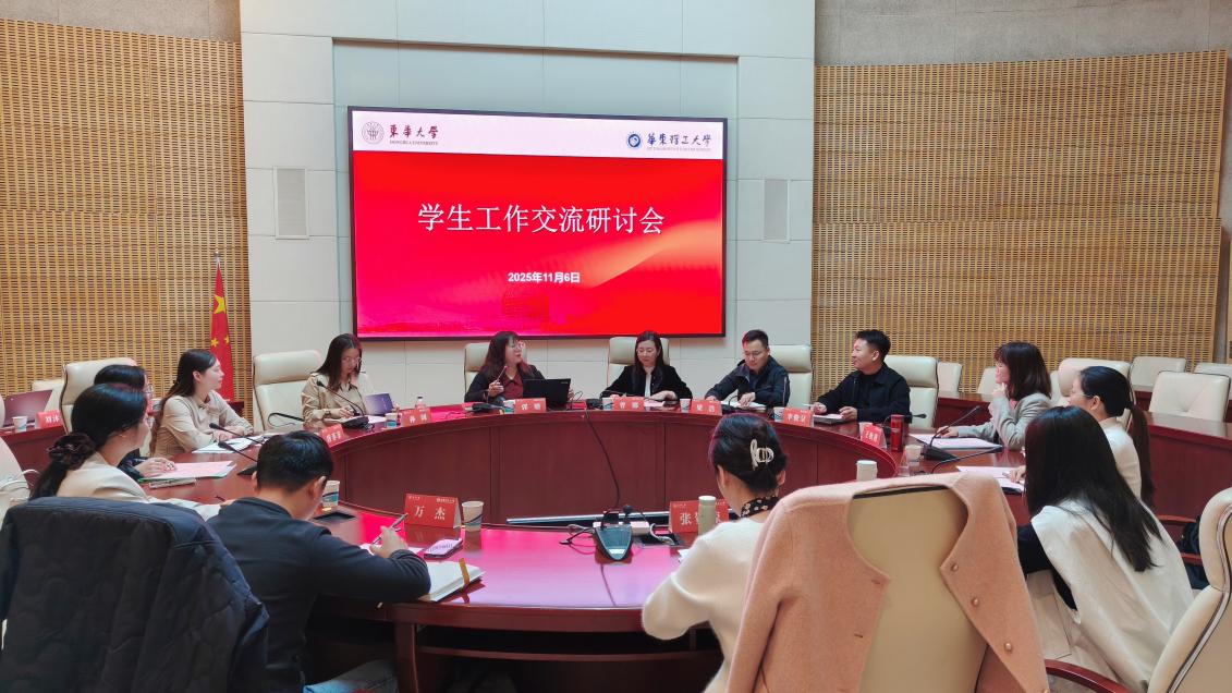 座谈会上,郭姗对华东理工大学学工团队一行表示热烈欢迎,并从教育强国学工何为出发,详细介绍学院学科思政系统规划,以及党团建设、网络思政、学风工程等学生工作特色做法。